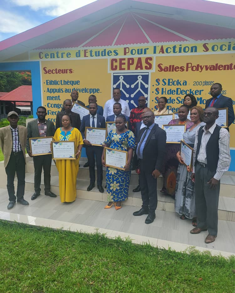 Après quatre jours de formation délivrée aux délégués syndicaux de la Convention de lutte pour les employés (CLE), de la Confédération Démocratique du Travail (CDT), de la Confédération Syndicale du Congo (CSC), de la Générale Syndicale (GS) et de l’Union pour la Paix Sociale (UPS), les bénéficiaires ont reçu un brevet attestant de leur formation et chaque participant s’est vu remettre ce brevet par le Directeur Général adjoint du CEEC, le professeur God”EL KINYOKA, représentant le DG Freddy Mwamba en mission.